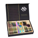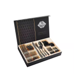 Изготовленный из высококачественной нержавеющей стали, обработанный с изысканным мастерством, золотой внешний вид роскошен и долговечен. Богатая конфигурация столовой посуды соответствует всем видам обеденных сцен. Изысканная подарочная упаковка демонстрирует элегантный стиль. Также доступно индивидуальное обслуживание для создания эксклюзивных логотипов. Будь то для личного использования, чтобы усилить ощущение ритуала в жизни, или для подарка, чтобы передать чувства, это высококачественный выбор, который нельзя упустить.