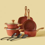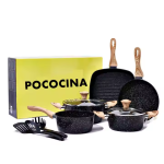 Этот набор гранитной посуды делает приготовление пищи на кухне еще более удобным благодаря своим превосходным характеристикам.