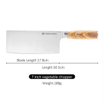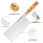 Изготовлен из высококачественной стали с научным соотношением углерода и хрома, обладает высокой твердостью и высокой прочностью. После многократной закалки в высокотемпературной печи и ковки с многократным мастерством лезвие становится острым и прочным, легко режет ингредиенты, его нелегко скрутить и потрескать.