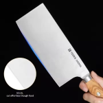 Используя трехступенчатую технологию тонкой заточки с ручной заточкой, лезвие постепенно становится тоньше от задней части лезвия к лезвию, так что лезвие имеет превосходную остроту, и оно гладкое и ровное при резке ингредиентов. Будь то резка овощей или мяса, его можно резать гладко.