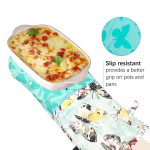 Поверхность покрыта плотными силиконовыми противоскользящими узорами, с прочным сцеплением, даже если руки мокрые или захватывать противни и кастрюли с гладкими поверхностями, она может оставаться устойчивой и не скользить. Благодаря равномерной и тонкой технологии шитья она износостойкая и долговечная, что обеспечивает длительный противоскользящий эффект.